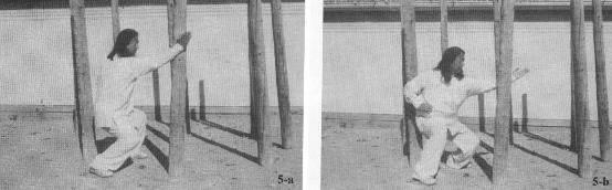 Contrary to what is seen in the popular Kung Fu movies, this style of post training is never done upon the tops of the posts. Usually the training involves posts placed in a circular pattern plus a center post (total of 9 posts). Each post is loosely packed with crushed rock so as to provide ample give when being struck. However, with static posture striking palm training one needs only a single post, and the moving posture palm training can be done with three posts.