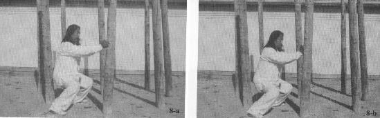 Although Ba Gua Zhang, in general, is often imbued with the intellectualism of the Yi Ching, make no mistake about the physical demands made upon the practitioner. This type of training requires many years of repetitive circle walking as well as internal and external strength. Post training represents only a small portion of the overall training and conditioning of the system.